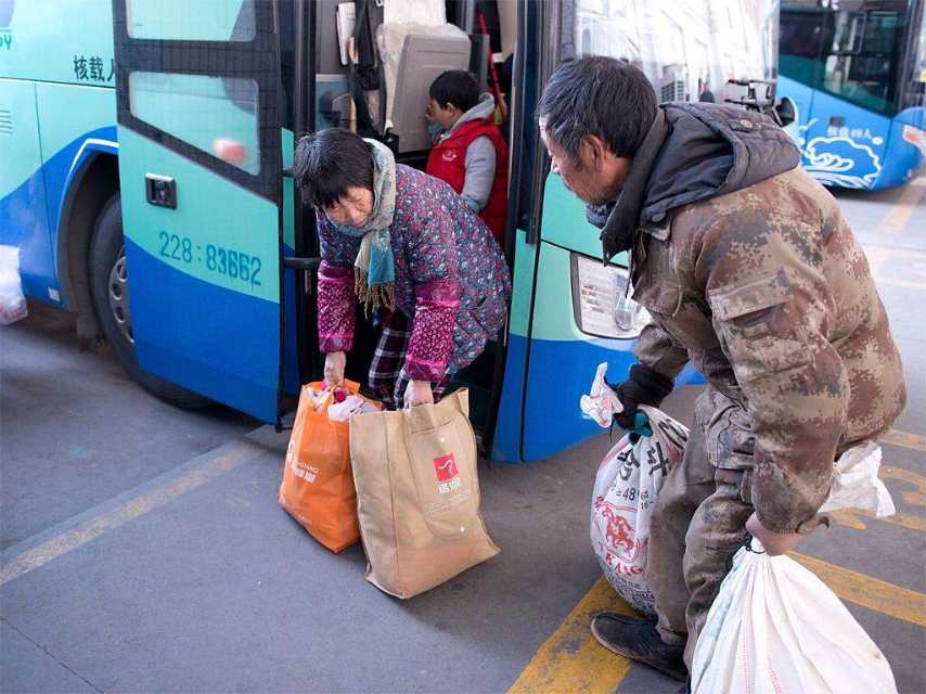 圖一:來自連云港的老王夫婦。老王61歲,老伴59歲。生有一雙兒女。兒子在丹陽打工,女兒在老家工作,都已各自成家。老兩口在揚(yáng)州施橋承包了30畝地。2月8號上午,老兩口帶著孫女來到揚(yáng)州汽車西站,老伴兒準(zhǔn)備帶孫女去丹陽兒子家過年。