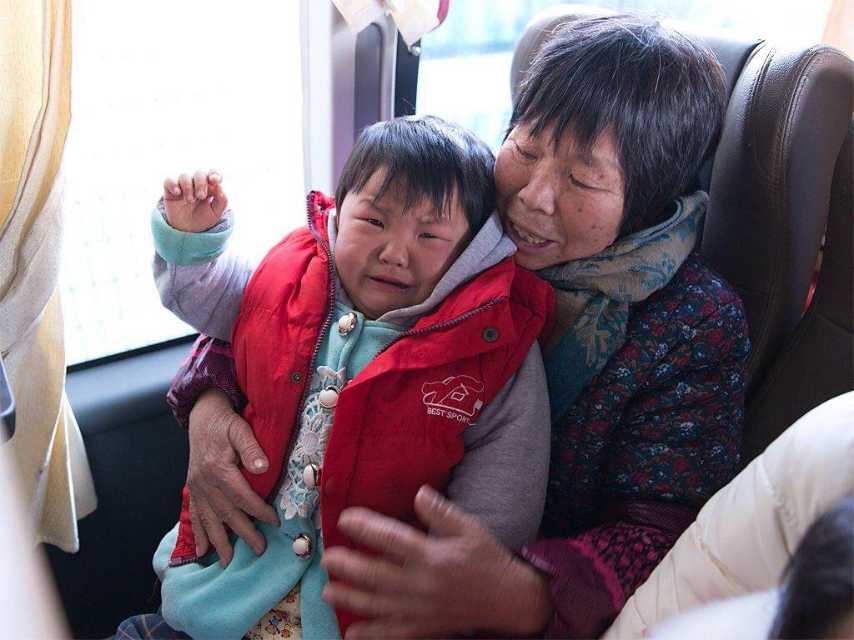 圖五:剛剛坐定,小孫女跟爺爺說再見的時(shí)候忍不住哭了……