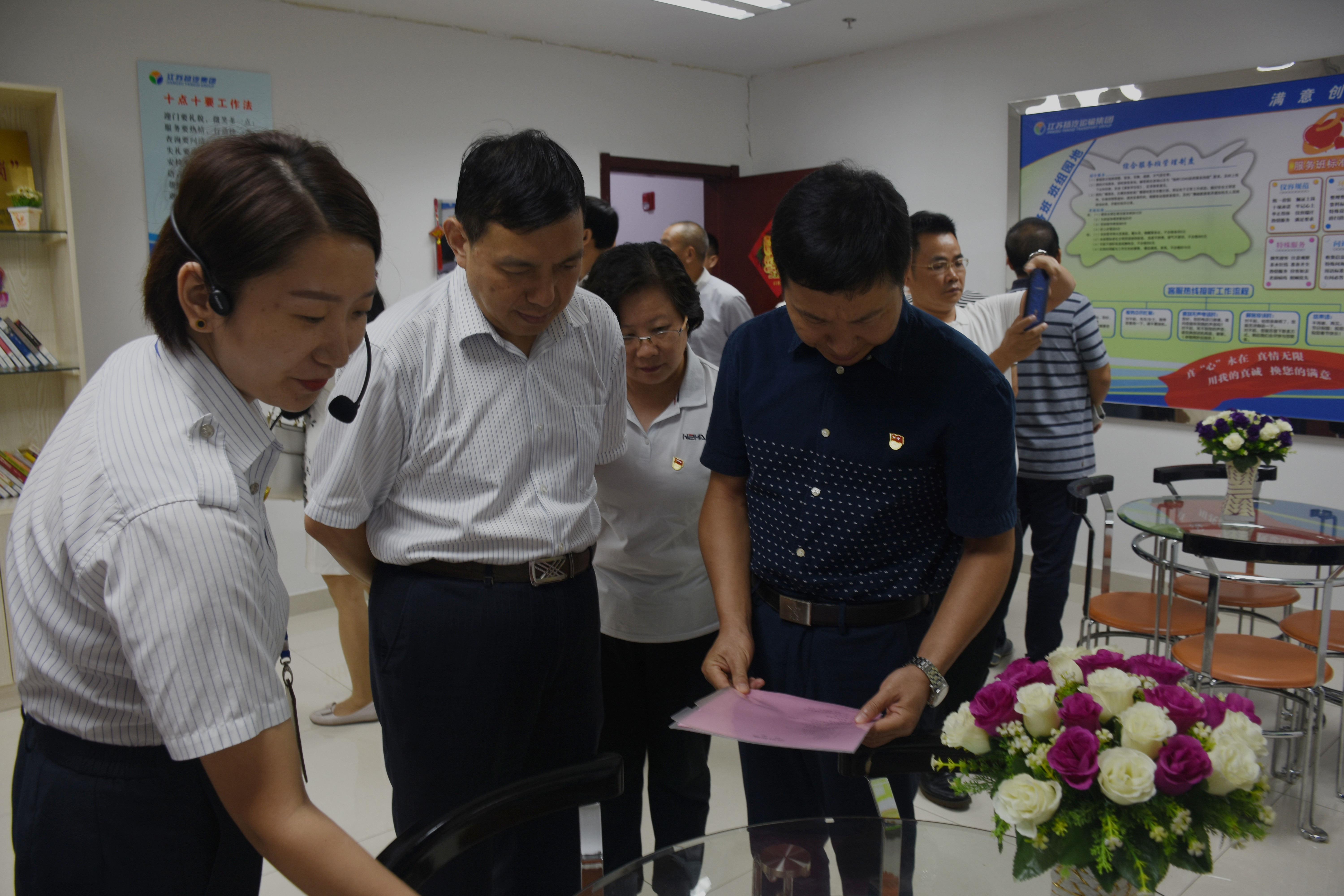 參觀團一行首先來到揚州汽車站黨建陣地,查看了黨建宣傳欄、黨務公開欄、黨建文化照片墻等,在現(xiàn)場,揚州站站長和書記分別介紹了揚州汽車站“黨員示范崗”服務流程、服務特色和車站黨支部開展黨建工作的基本情況,重點分享了揚州汽車站作為傳統(tǒng)客運企業(yè)在面對脫困轉型時如何發(fā)揮支部的戰(zhàn)斗堡壘作用和黨員的先鋒模范作用。隨后,參觀團一行走進服務班和售票班組活動室現(xiàn)場感受車站黨建工作與班組創(chuàng)建的有機融合,對支部臺帳、開展活動的形式等多個方面進行了交流與探討,分享各自優(yōu)秀的黨建工作經驗和做法,共同提升新時期黨建工作水平。