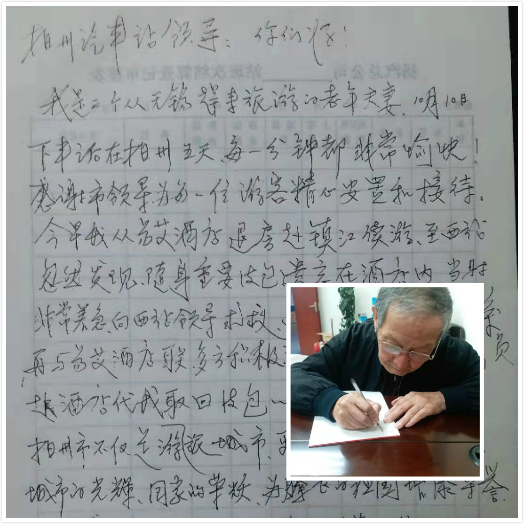 八旬老人寫下文字感謝揚州站工作人員