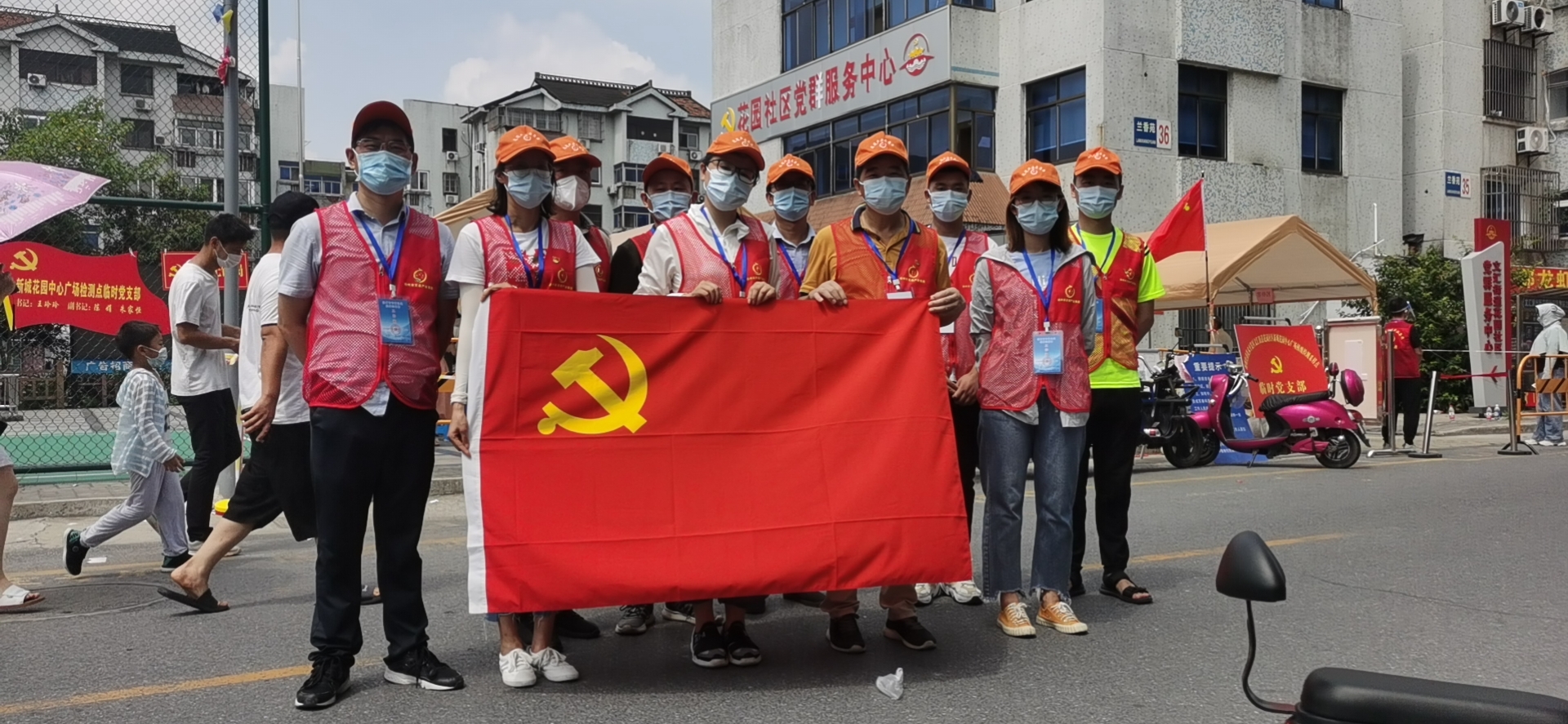根據(jù)交通產(chǎn)業(yè)集團(tuán)志愿服務(wù)隊(duì)的統(tǒng)一安排,他們在文匯街道花園小區(qū)、雙橋街道新莊二村進(jìn)行志愿服務(wù)。在檢測點(diǎn),他們頂著烈日,測量體溫、查驗(yàn)蘇康碼,安撫待檢群眾煩躁情緒,協(xié)助老年、殘疾、特殊人員開啟綠色通道,保障核酸檢測工作有序展開。“您好,麻煩往前走一步,注意腳下一米黃線”、“您好,請出示健康碼”,他們不斷地重復(fù)這些話,即使聲音沙啞,依然以熱情積極的態(tài)度引導(dǎo)著每一位前來進(jìn)行核酸檢測的居民。