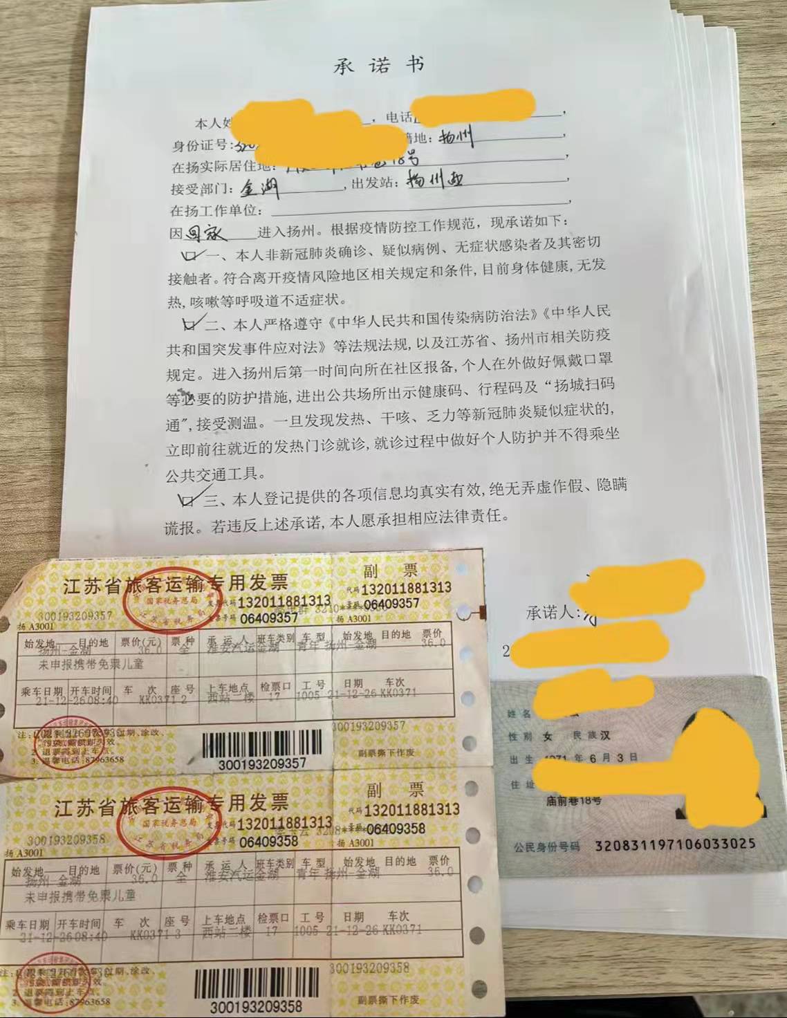 由于情況特殊,但也不能違反疫情防控要求。∵@可怎么辦呢?黃建軍從這名旅客提供的個人物件中,發(fā)現(xiàn)了幾張往返車票,通過車票拼湊出了她十四天內(nèi)的行程,僅往返于揚州和金湖兩地,并未到過疫情重點區(qū)域。