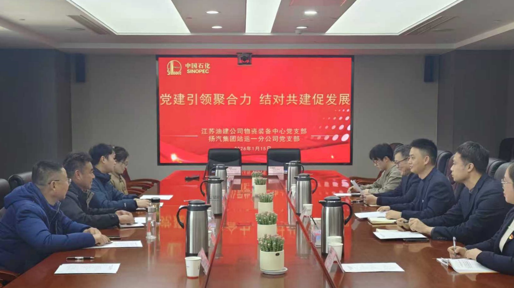 座談環(huán)節(jié),雙方圍繞業(yè)務(wù)工作與黨建亮點展開交流。江蘇油建物資裝備中心黨支部介紹了主營業(yè)務(wù)與黨建品牌創(chuàng)建經(jīng)驗,重點分享黨建融入安全生產(chǎn)的實踐路徑。站運一分公司黨支部立足車站運營,介紹了“星級服務(wù) 溫馨之旅”黨建微品牌建設(shè)情況,并推介了集團相關(guān)業(yè)務(wù)。隨后,雙方現(xiàn)場簽署黨建共建協(xié)議,明確將以共建為抓手,拓展黨建與業(yè)務(wù)、安全、隊伍建設(shè)的結(jié)合點,以高質(zhì)量黨建引領(lǐng)高質(zhì)量發(fā)展。